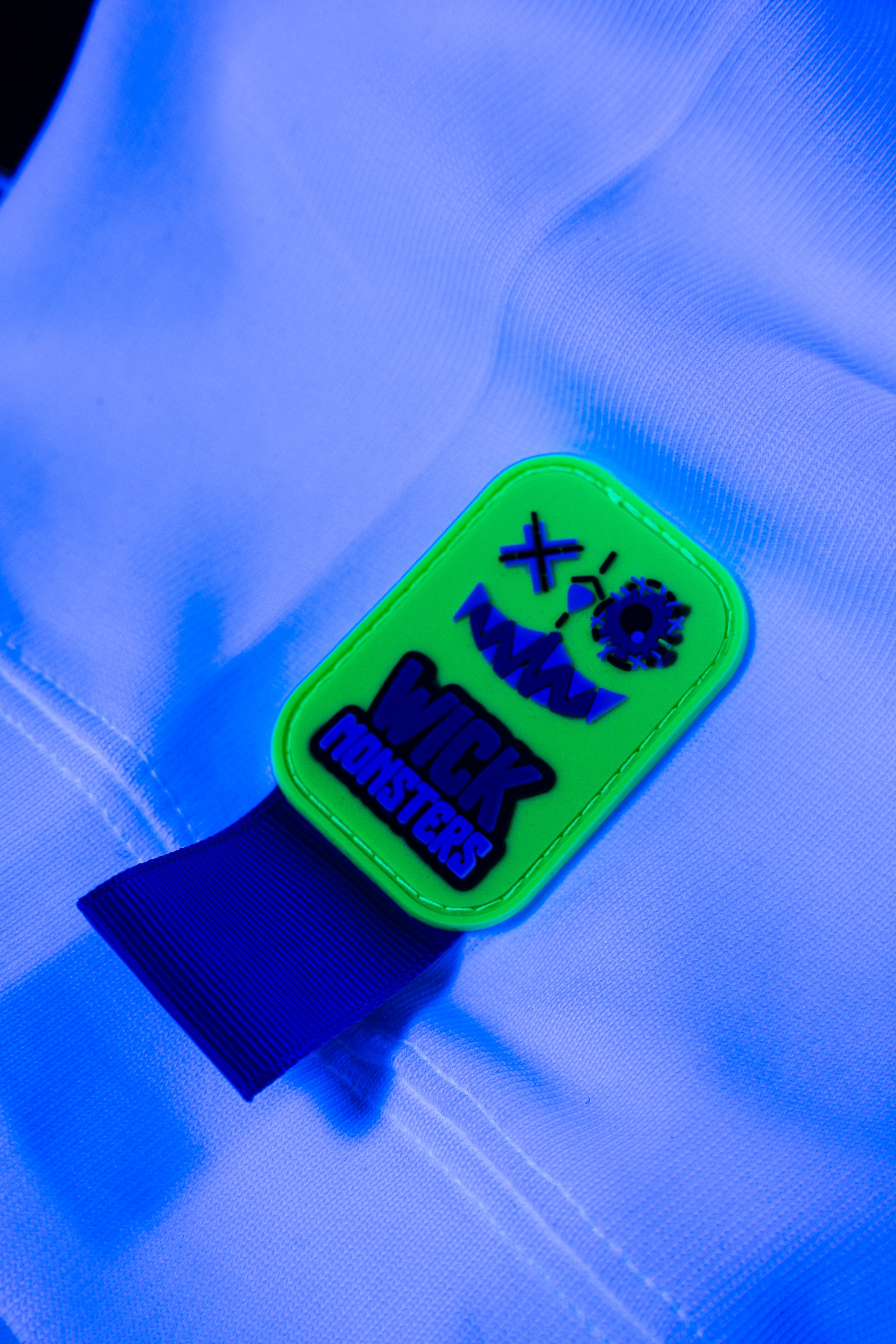 Stay wild and stand out in the Oversized NR White Chain Tee from Wick Monsters. This tee is a glow-in-the-dark revolution, featuring a trippy neon monster graphic that comes to life under UV light and glowin  in the dark . Whether you're hitting the streets or the club, this tee is your ticket to turning heads and making noise.