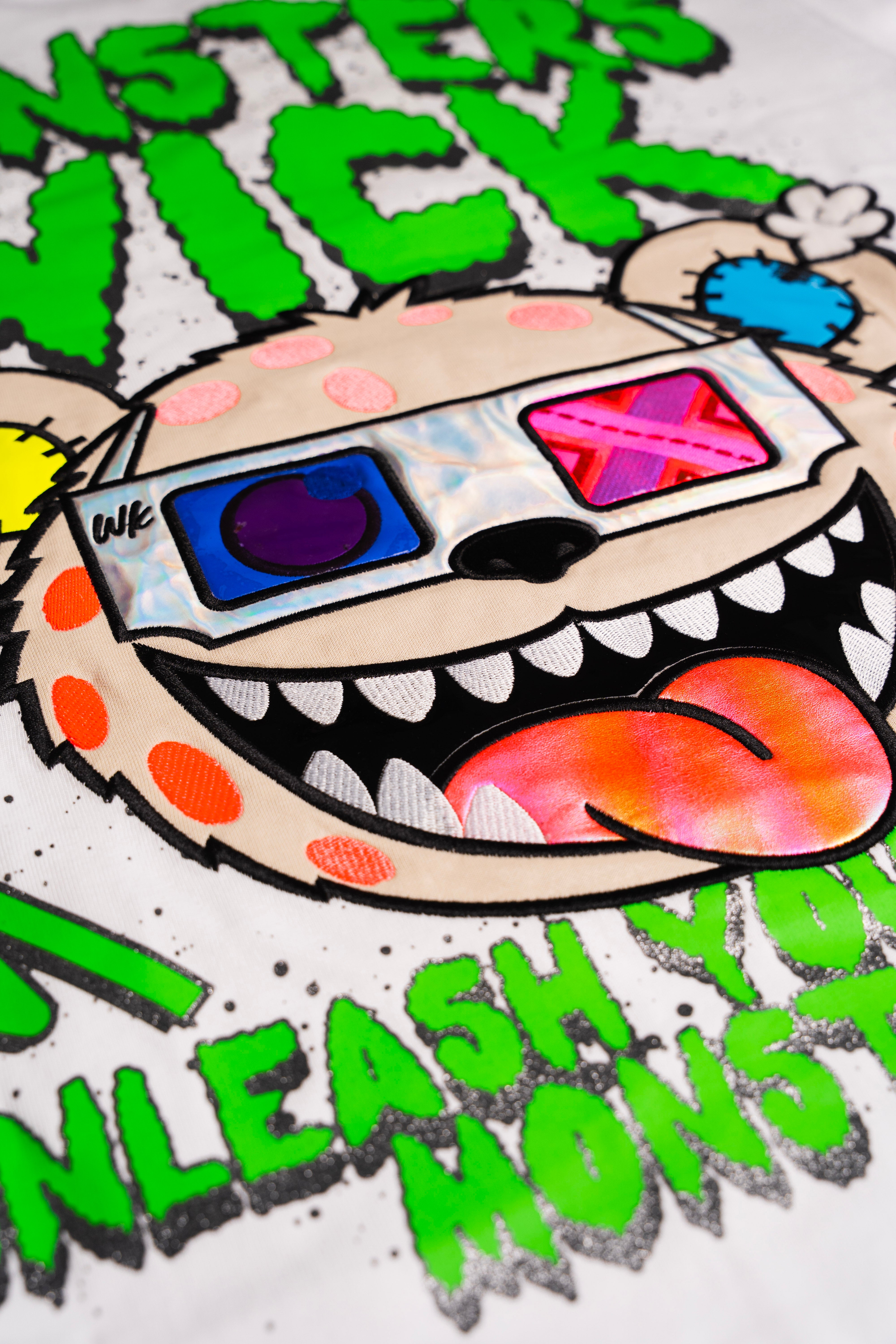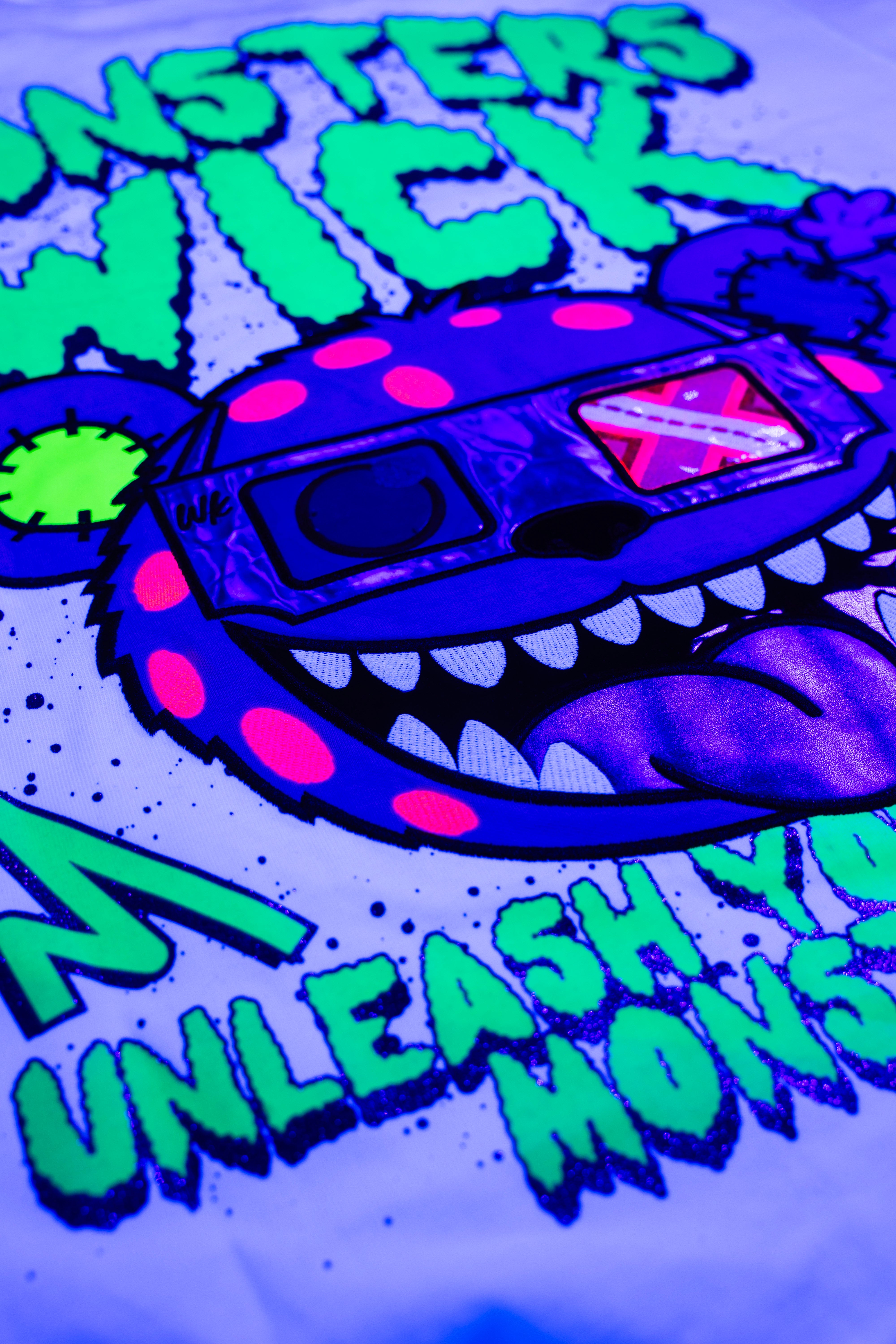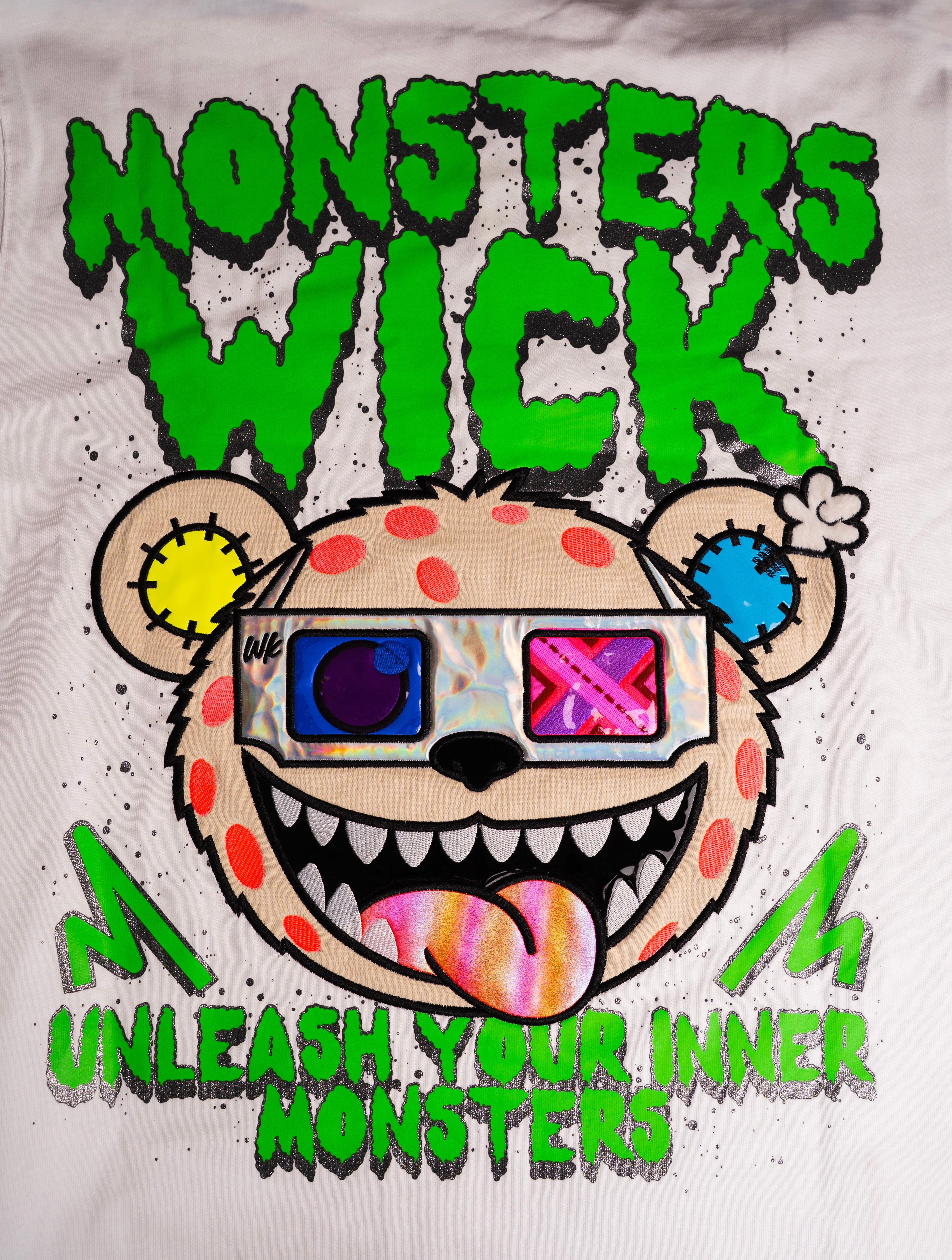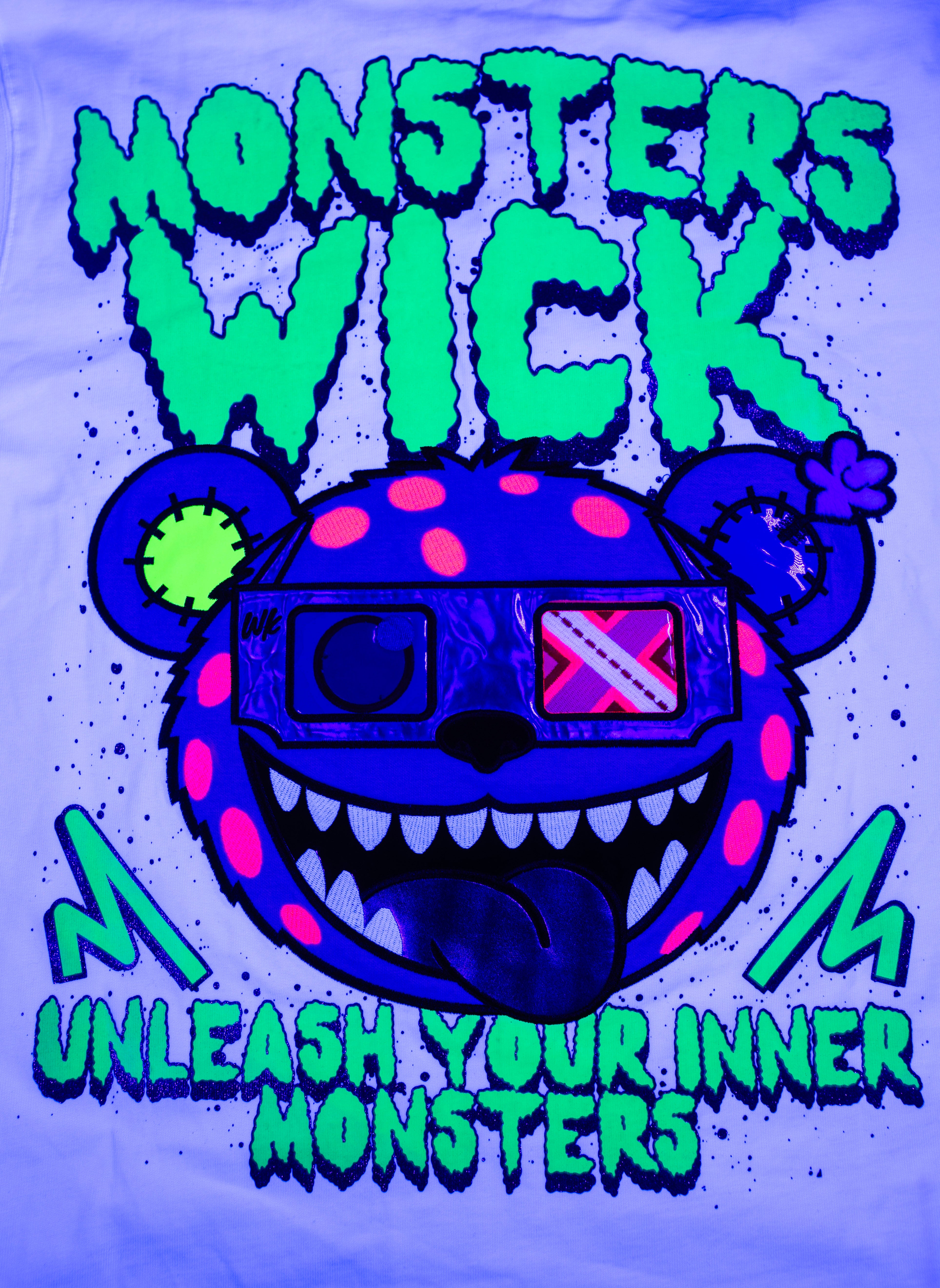 Bright splashes of neon and graffiti details give it that signature Wick Monsters vibe — raw, fearless, and impossible to ignore.