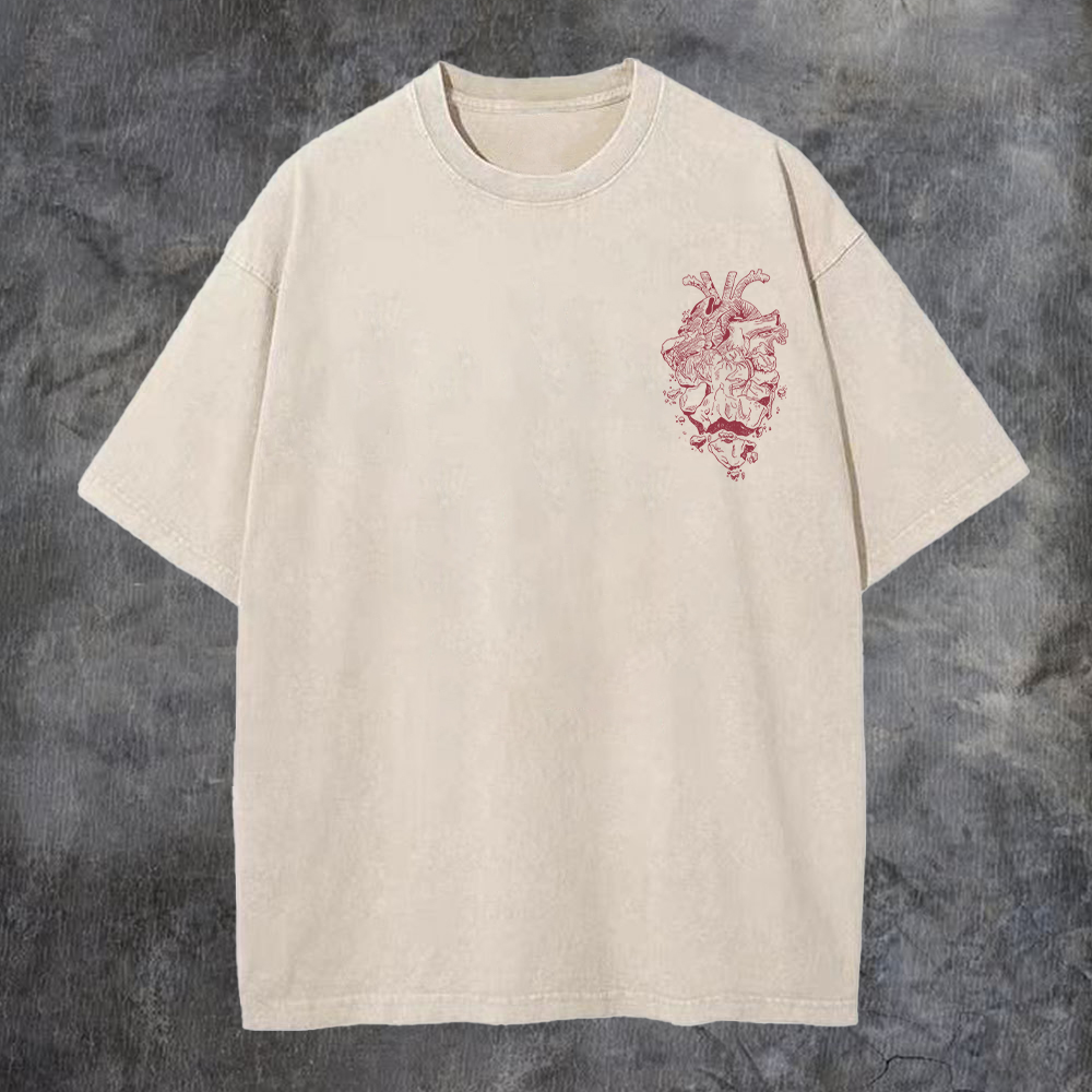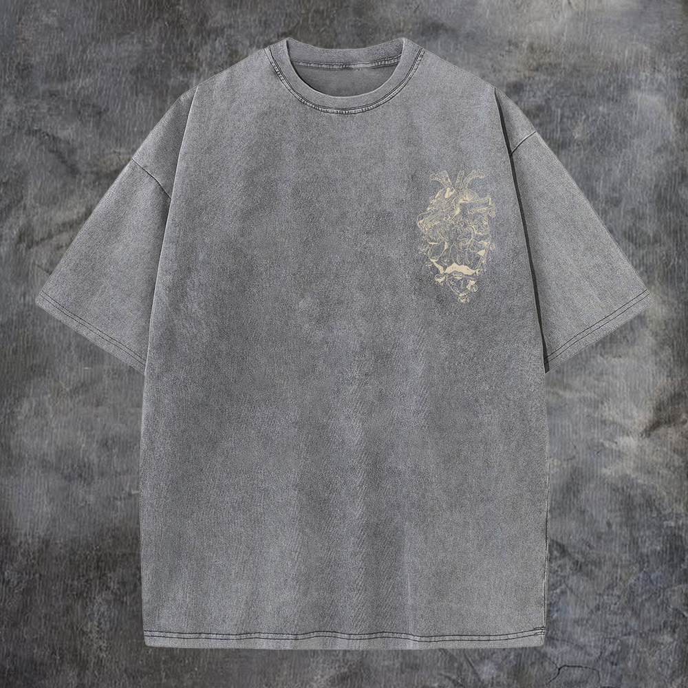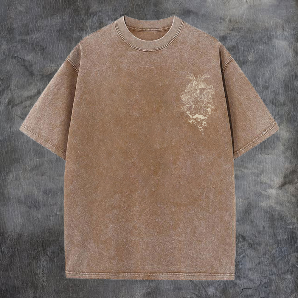 A soft and stretchy tee with a range of motion and comfort way beyond your typical cotton tee. Small batch garment dying and soft-to-the-touch water-based printing offers unique shades that make it more contemporary look. Classic crewneck features hand-drawn artwork.