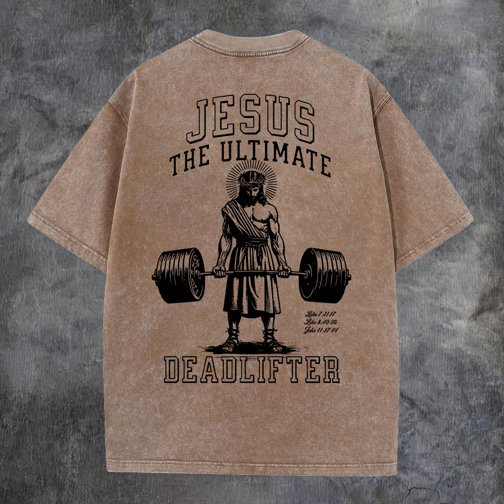 Jesus The Ultimate Deadlifter Washed T-Shirt