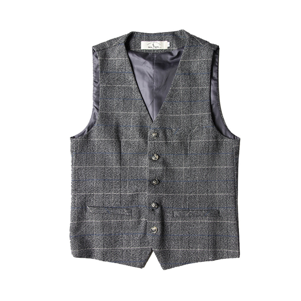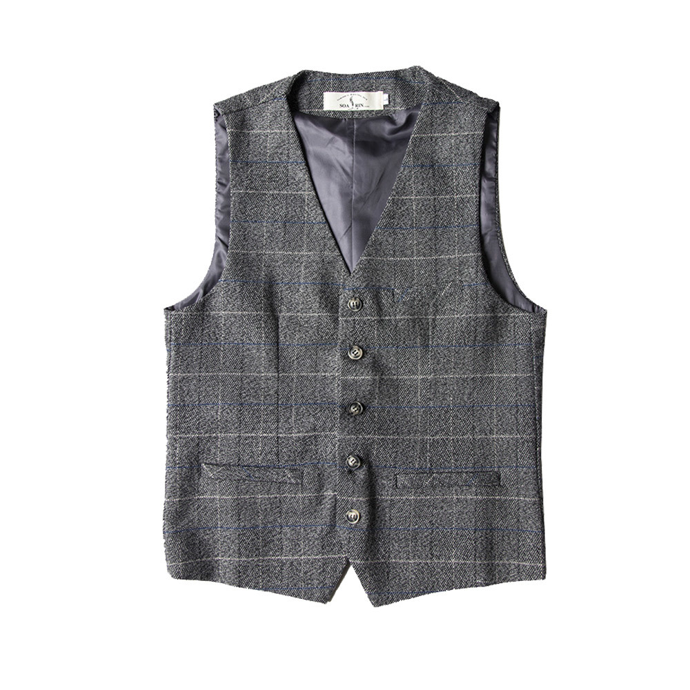 復古修身格紋西裝馬甲,磨毛提花款修身商務風。