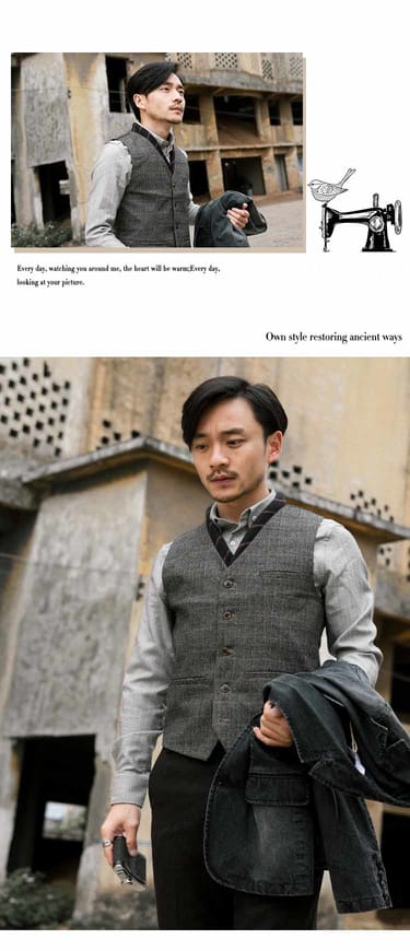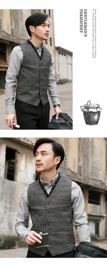英倫商務復古格紋西裝馬甲,在磨毛的卡其中崁入不同的線條如同紳士複雜紊亂的思緒。