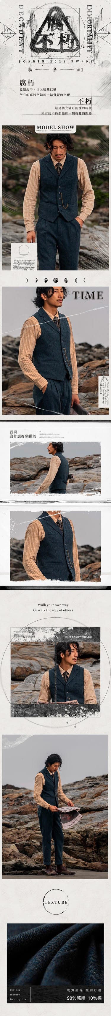 像是經歷無數故事的一件馬甲,偏成熟穩重;暖和厚實、耐穿耐磨,容易打理,款式百搭,簡約大方。