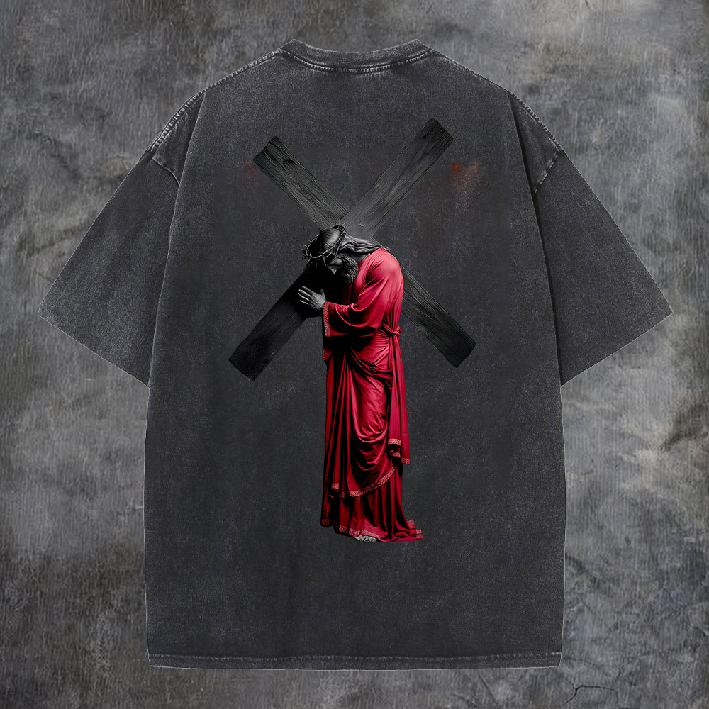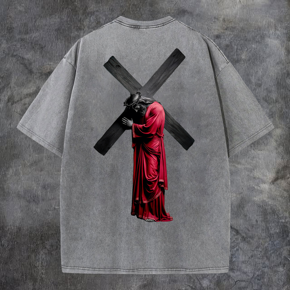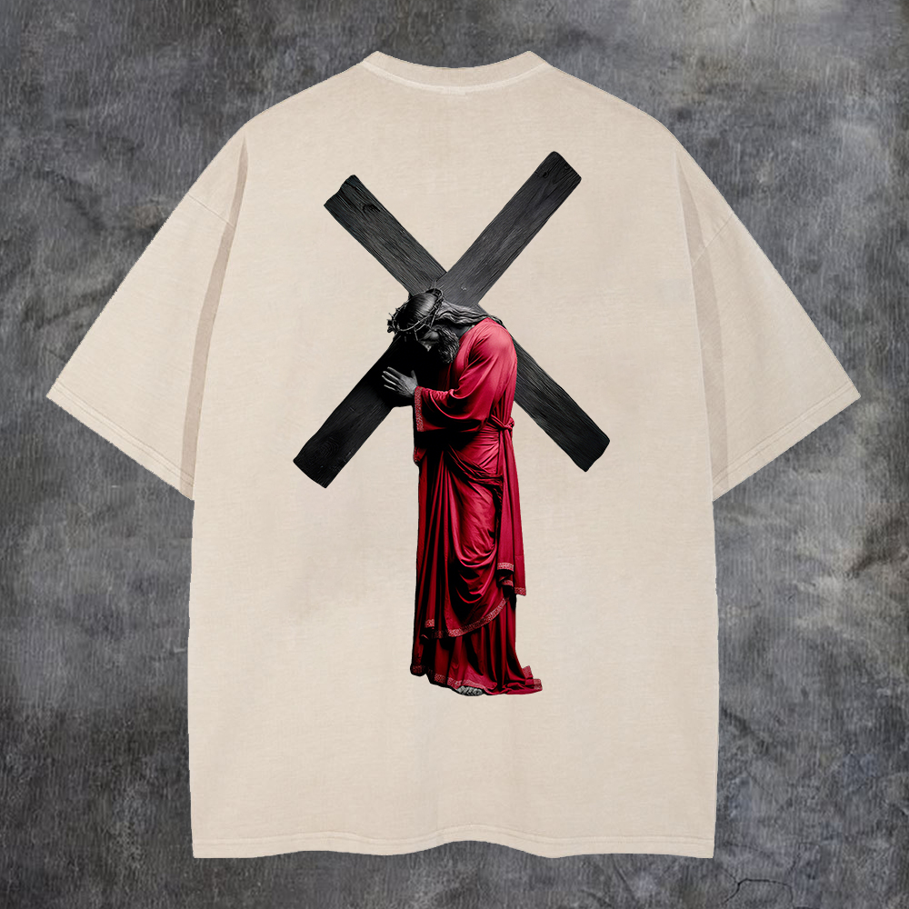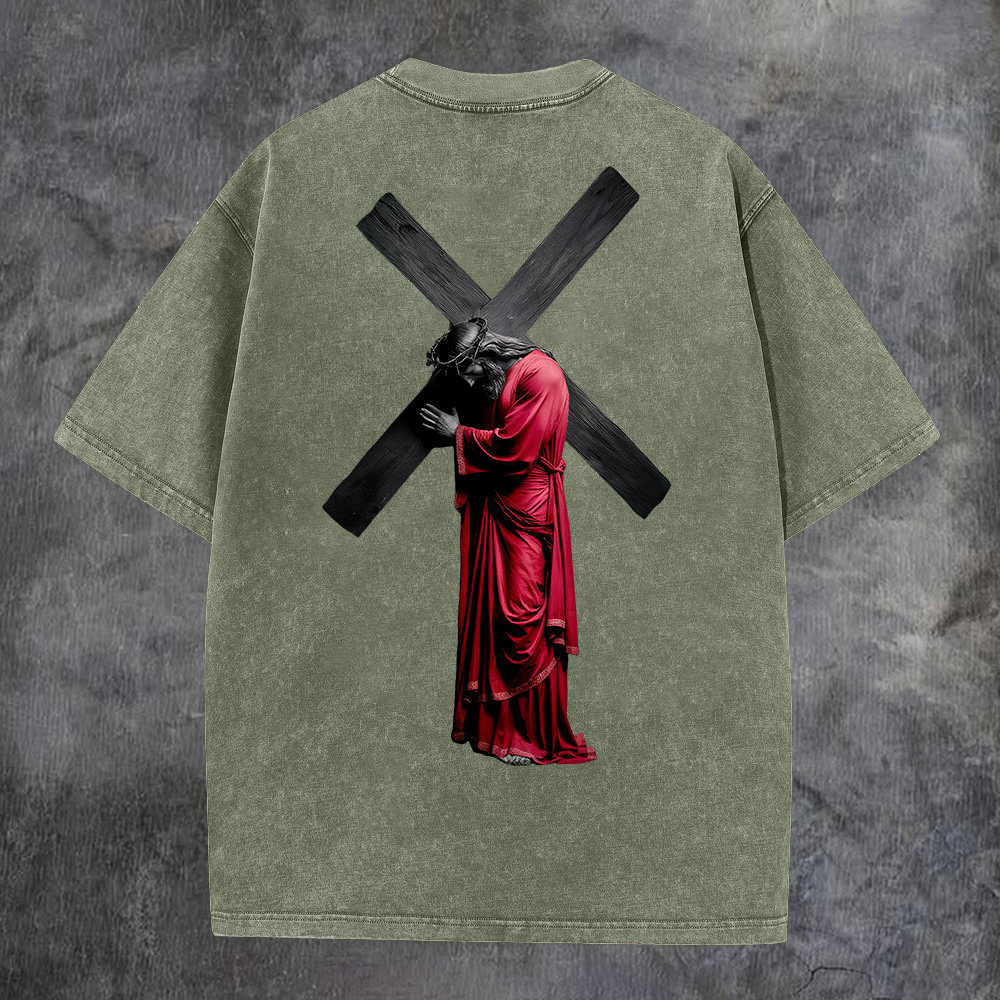 Cross - Bearing Figure Washed T-Shirt