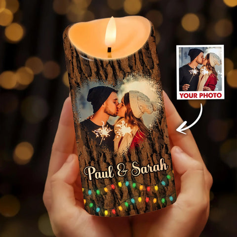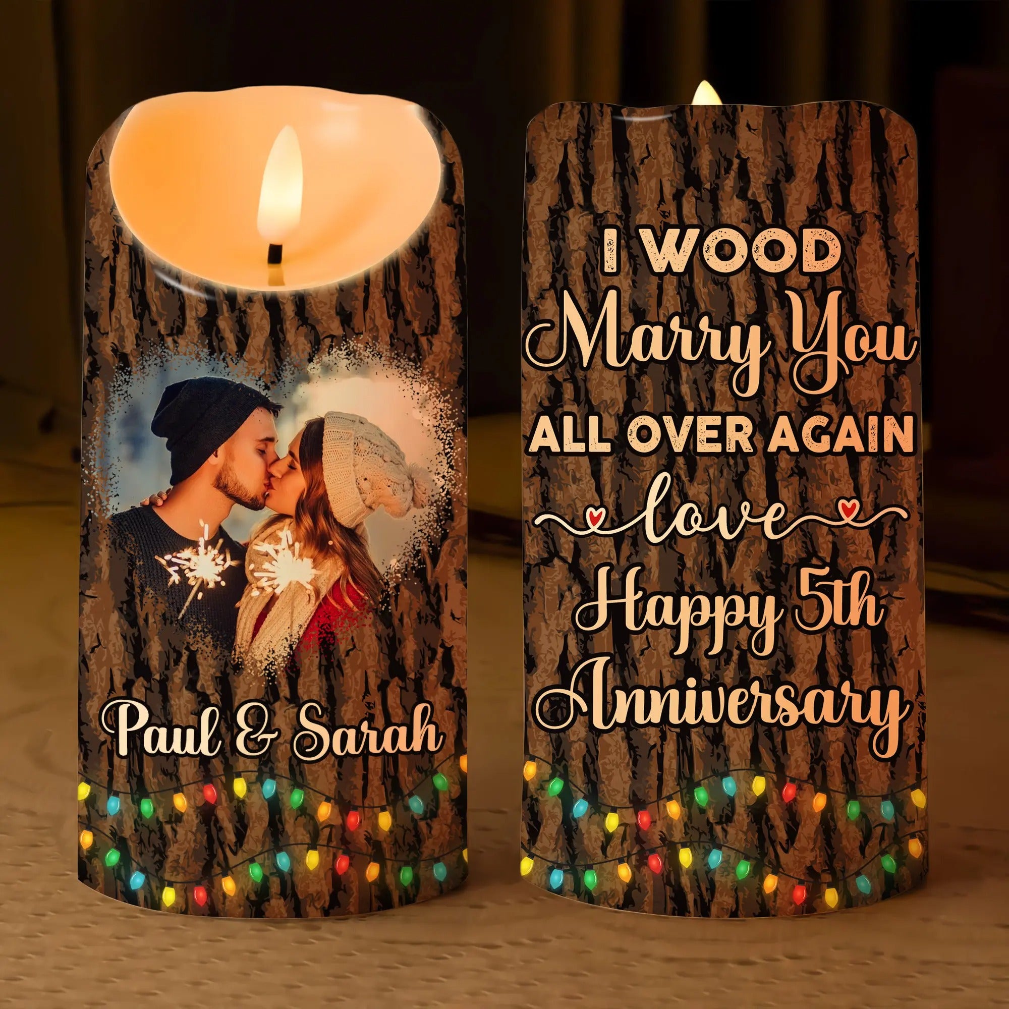 Custom Couple Photo Anniversary, I Wood Marry You All Over Again-Personalized Anniversary Christmas Led Candle