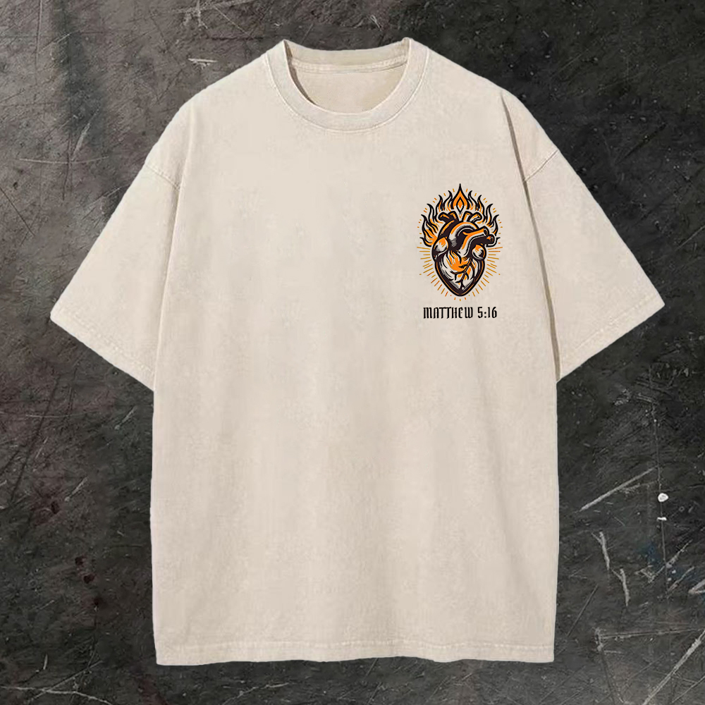 A soft and stretchy tee with a range of motion and comfort way beyond your typical cotton tee. Small batch garment dying and soft-to-the-touch water-based printing offers unique shades that make it more contemporary look. Classic crewneck features hand-drawn artwork.