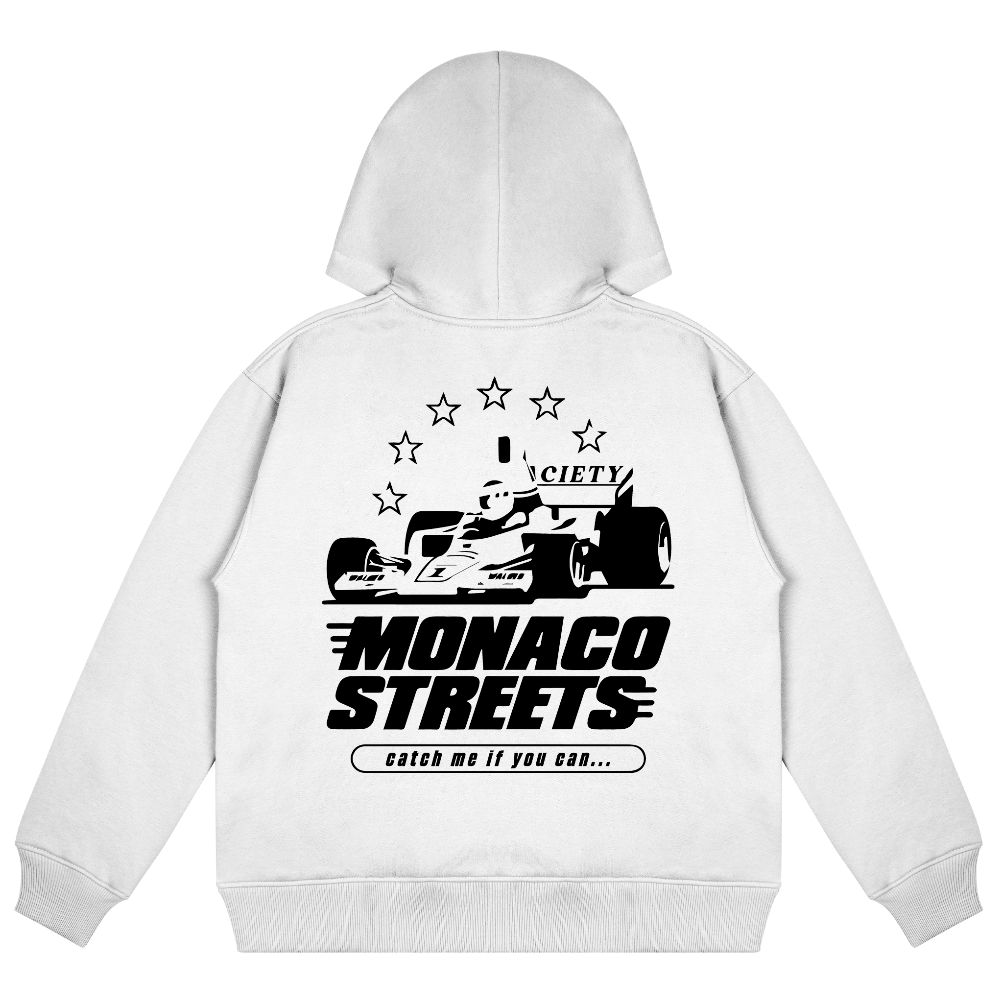 A hoodie that evokes the elegance and speed of the streets of Monaco. In the center, a Formula 1 car, ready to conquer the iconic curves of this legendary circuit. The phrase "Monaco streets" captures the essence of this emblematic destination of motorsport. Manufactured with the highest quality standards on the market, ensuring comfort and durability to enjoy impeccable style on any occasion.