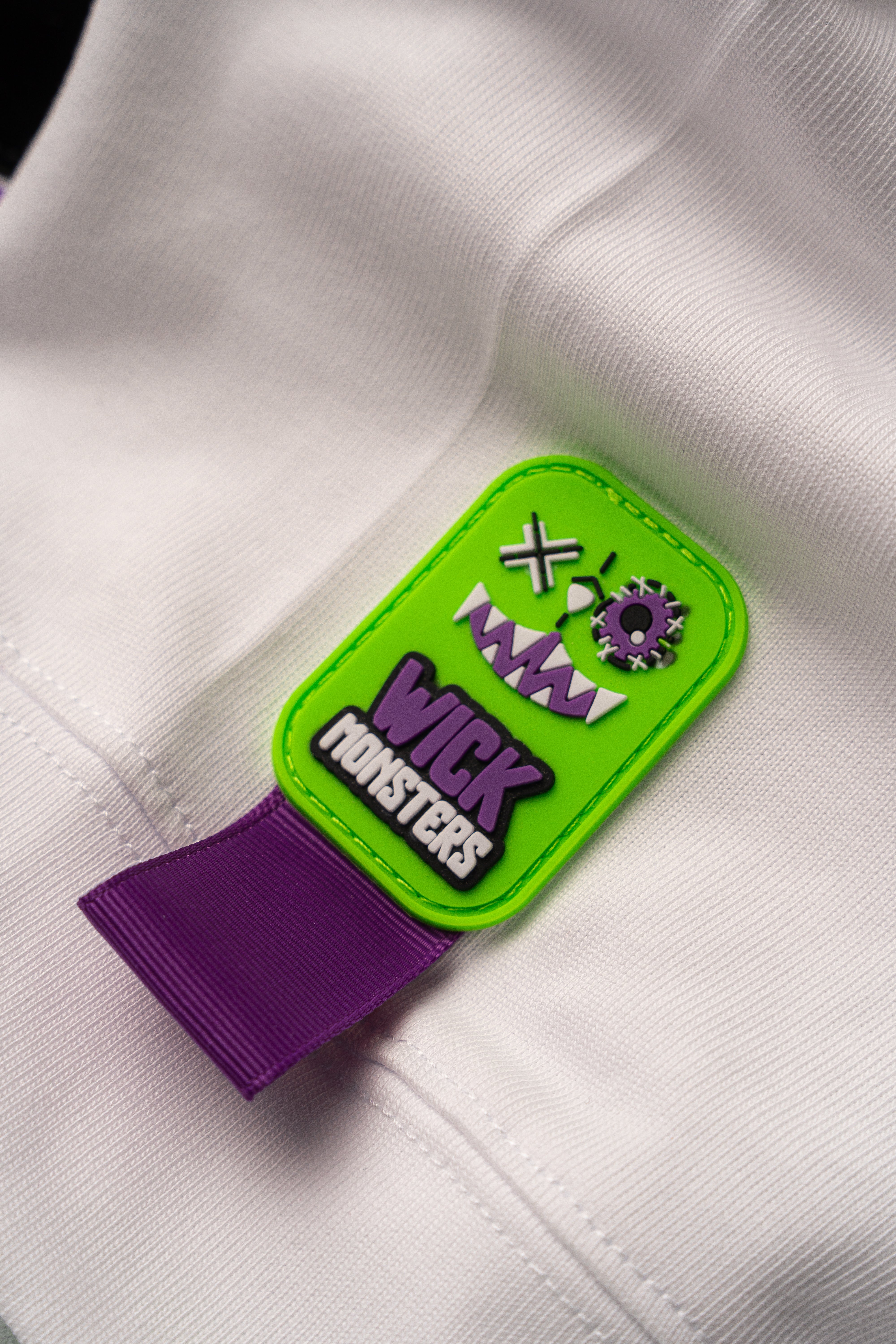 Stay wild and stand out in the Oversized NR White Chain Tee from Wick Monsters. This tee is a glow-in-the-dark revolution, featuring a trippy neon monster graphic that comes to life under UV light and glowin  in the dark . Whether you're hitting the streets or the club, this tee is your ticket to turning heads and making noise.