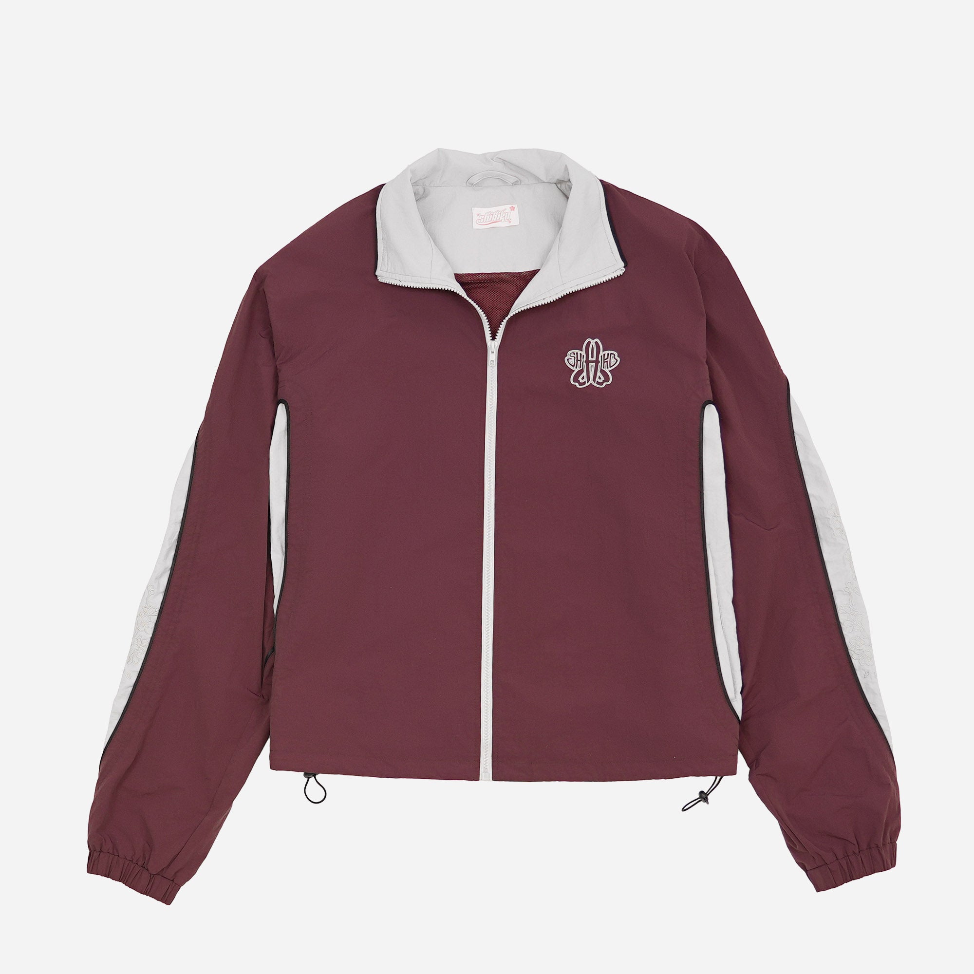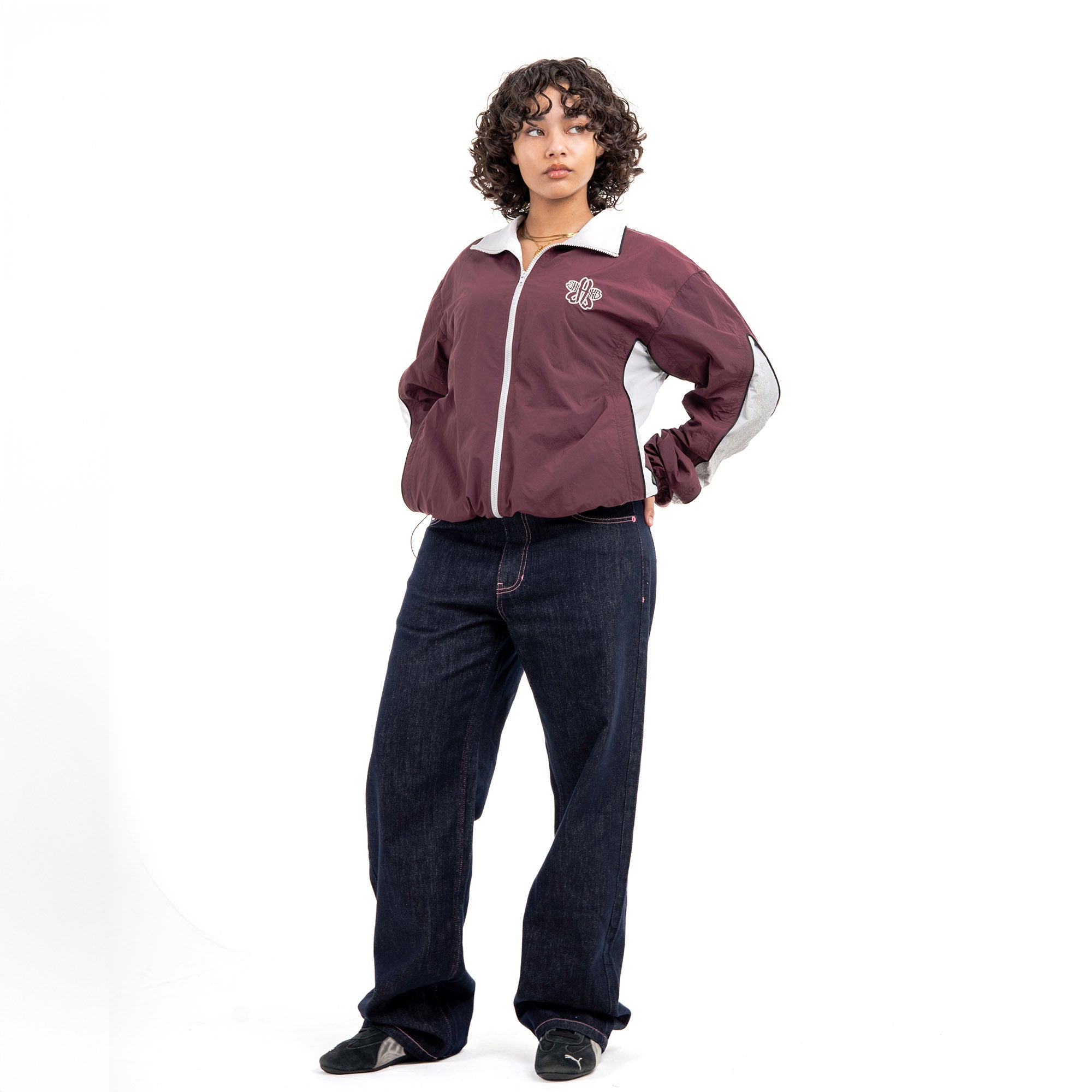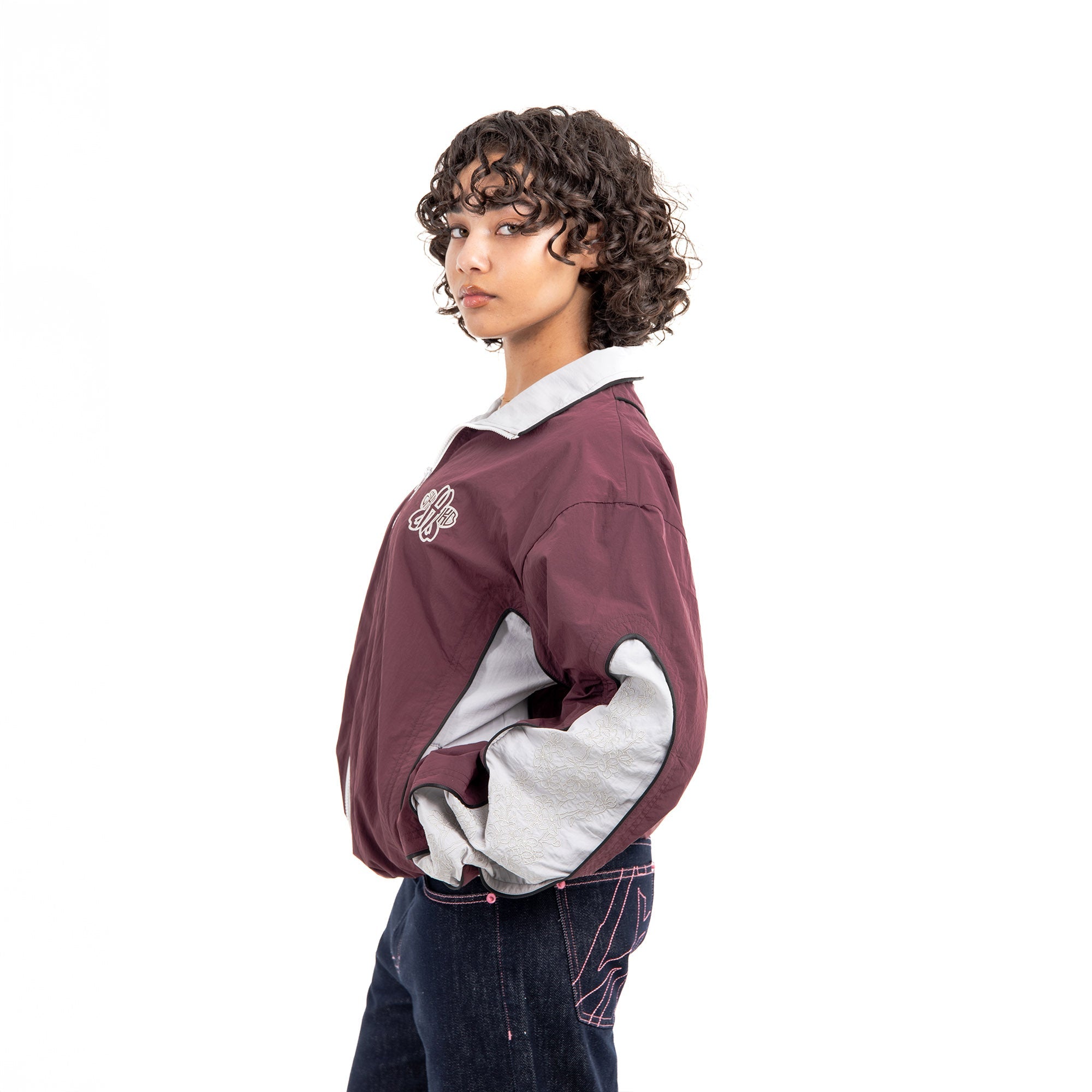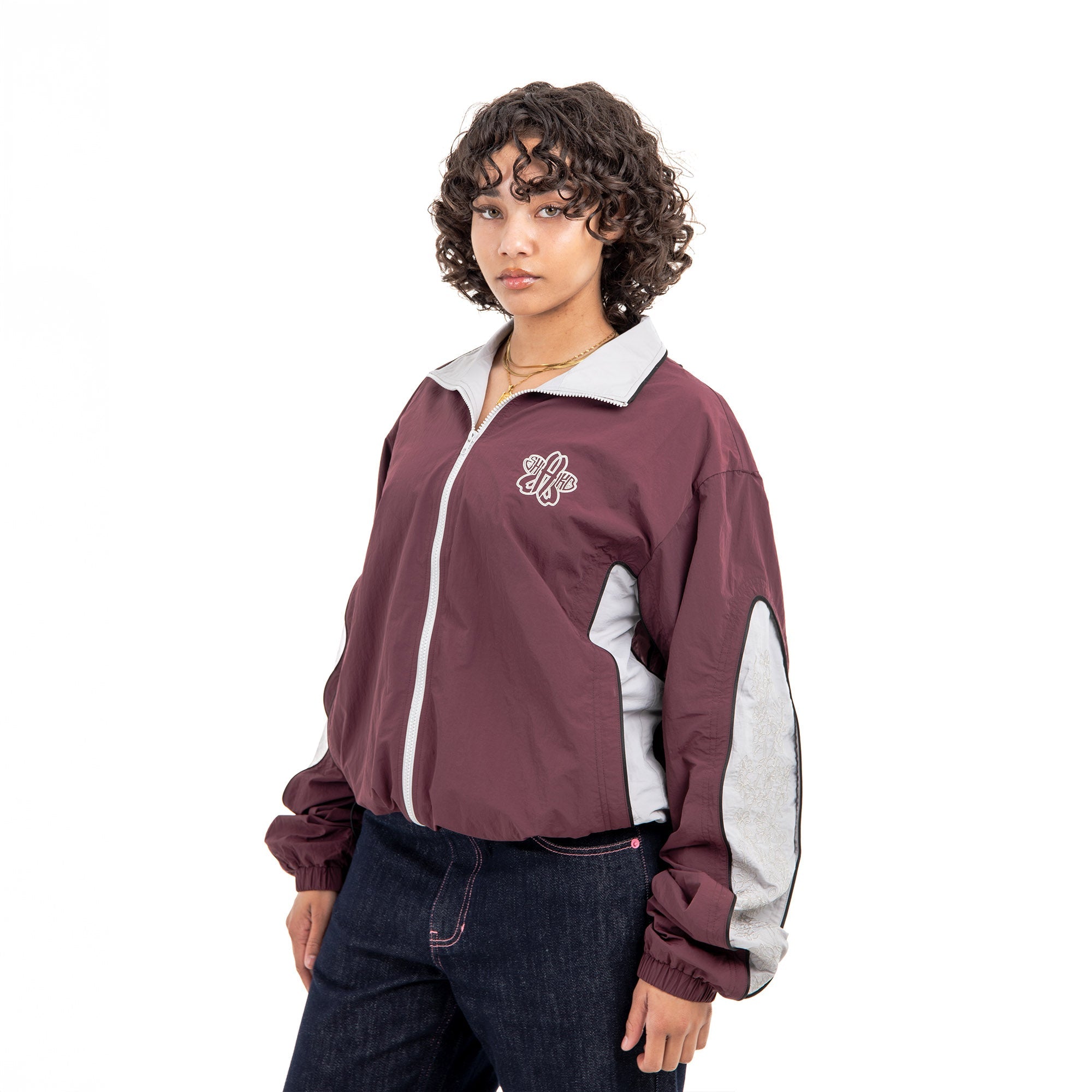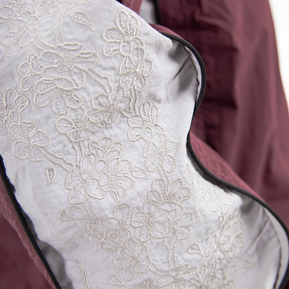Inspired by cherry blossoms, the Sakura Windbreaker is a stylish and practical layer. Made from lightweight nylon with black and grey panels, it features cherry blossom embroidery on the arms and chest. It's finished with a unique cherry blossom zipper and a rose gold hem tag.