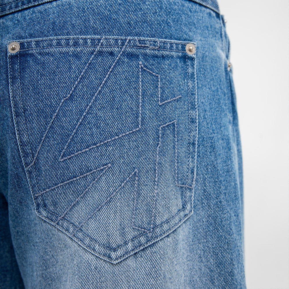 Shihiko Originals Wide Leg Jeans are cut from heavyweight 100% custom-washed 13 oz cotton denim and treated with a natural indigo monkey wash.
