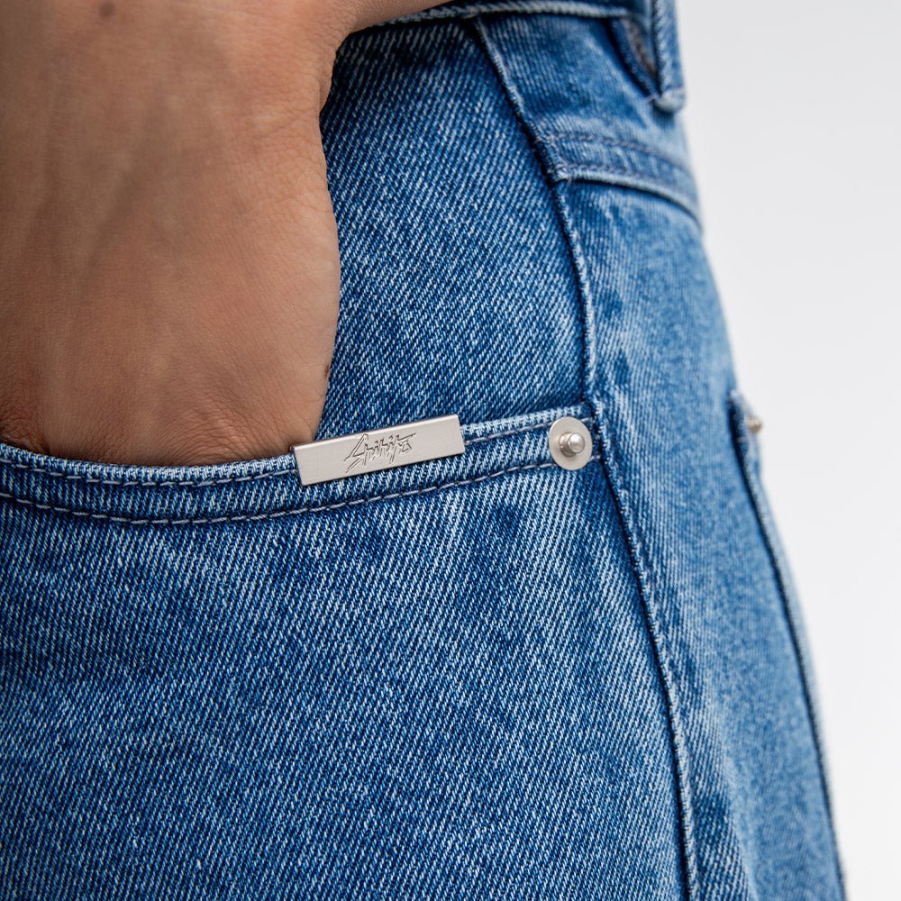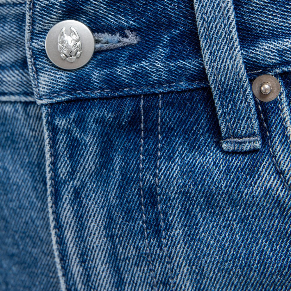 - 100% custom-washed 13 oz cotton denim