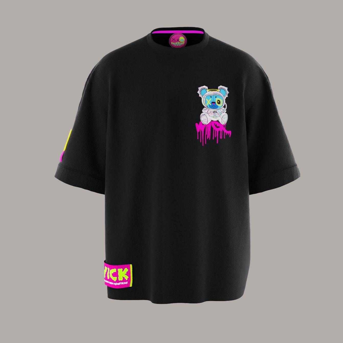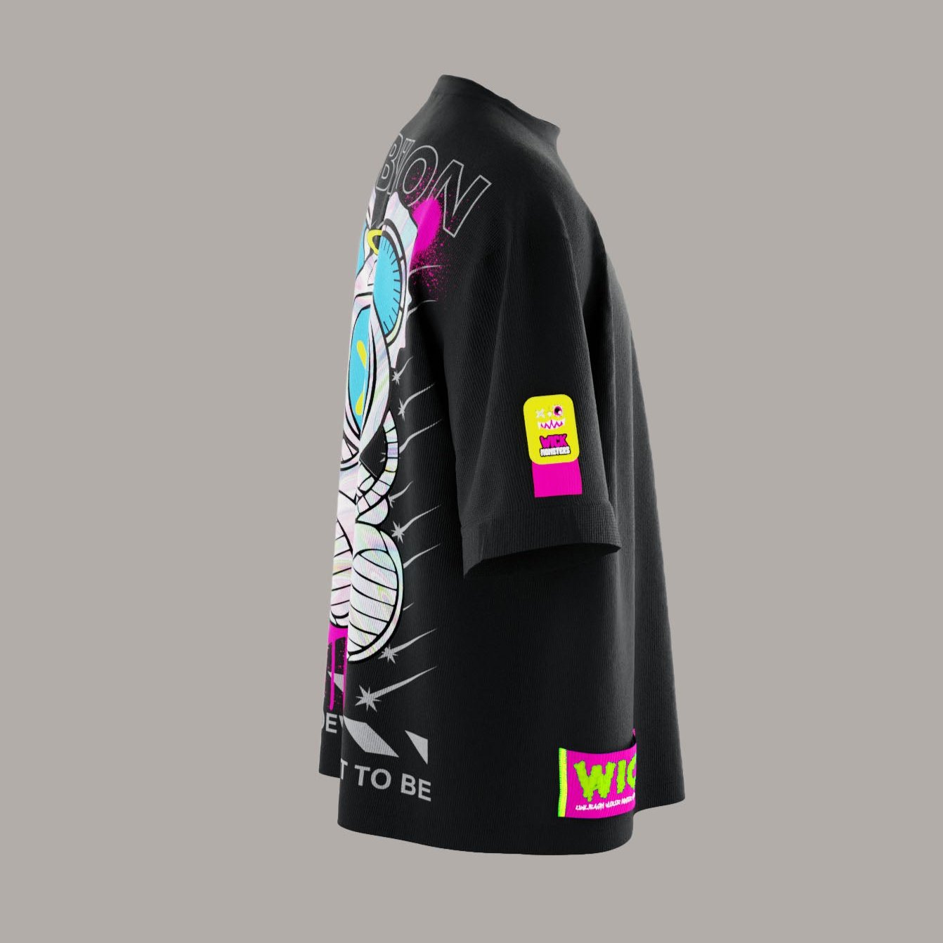 Explore new dimensions with the Space Black Oversized T-Shirt—cosmic vibes, bold style, and infinite Wick Monsters energy.