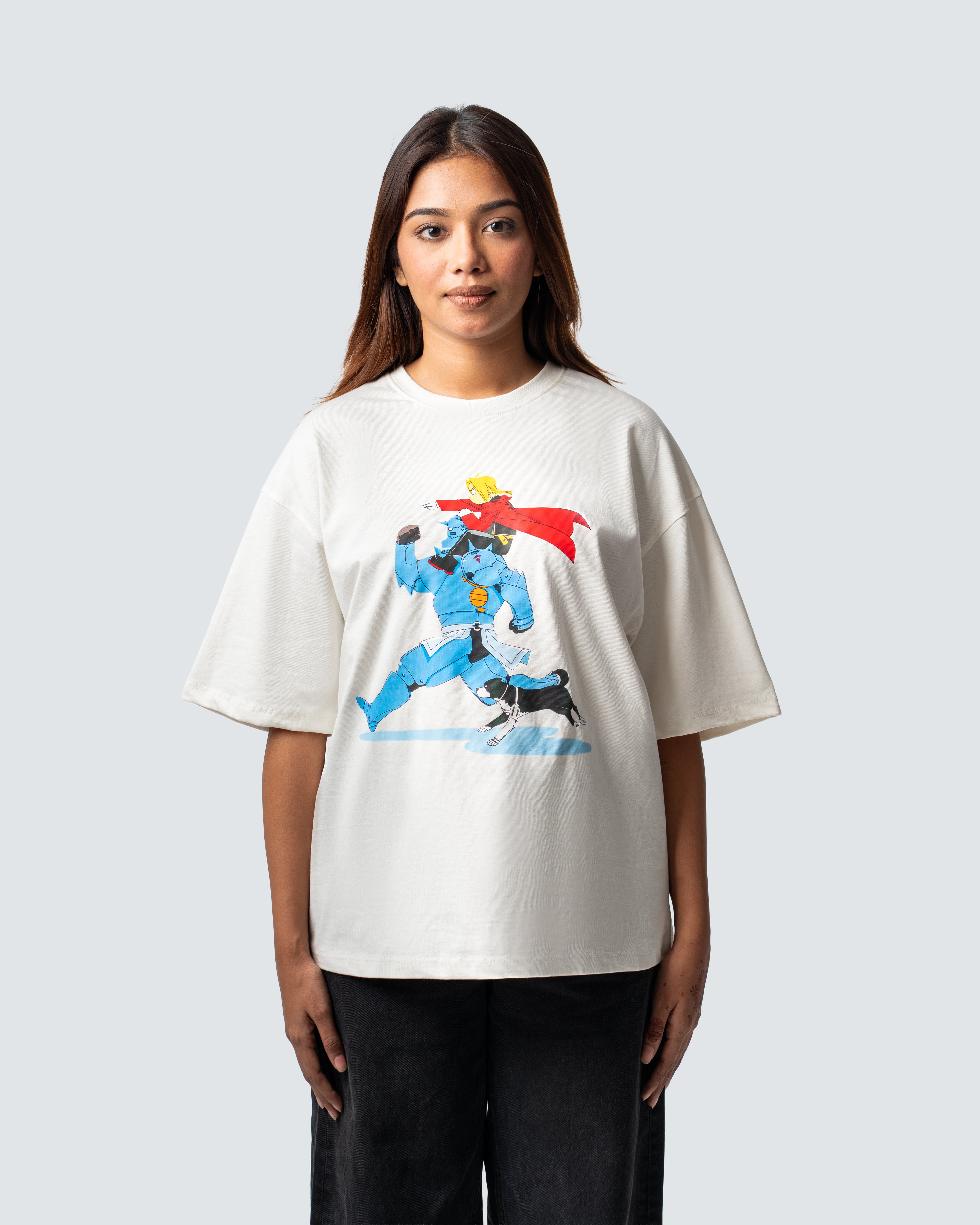 Featuring a relaxed baggy fit with dropped shoulders, it delivers the effortless flow of modern streetwear without losing structure. Each graphic is produced using 8-pass export-grade DTF printing with a hydraulic heat-press finish, achieving exceptional clarity, saturation, and longevity — prints that feel like art, not plastic.
