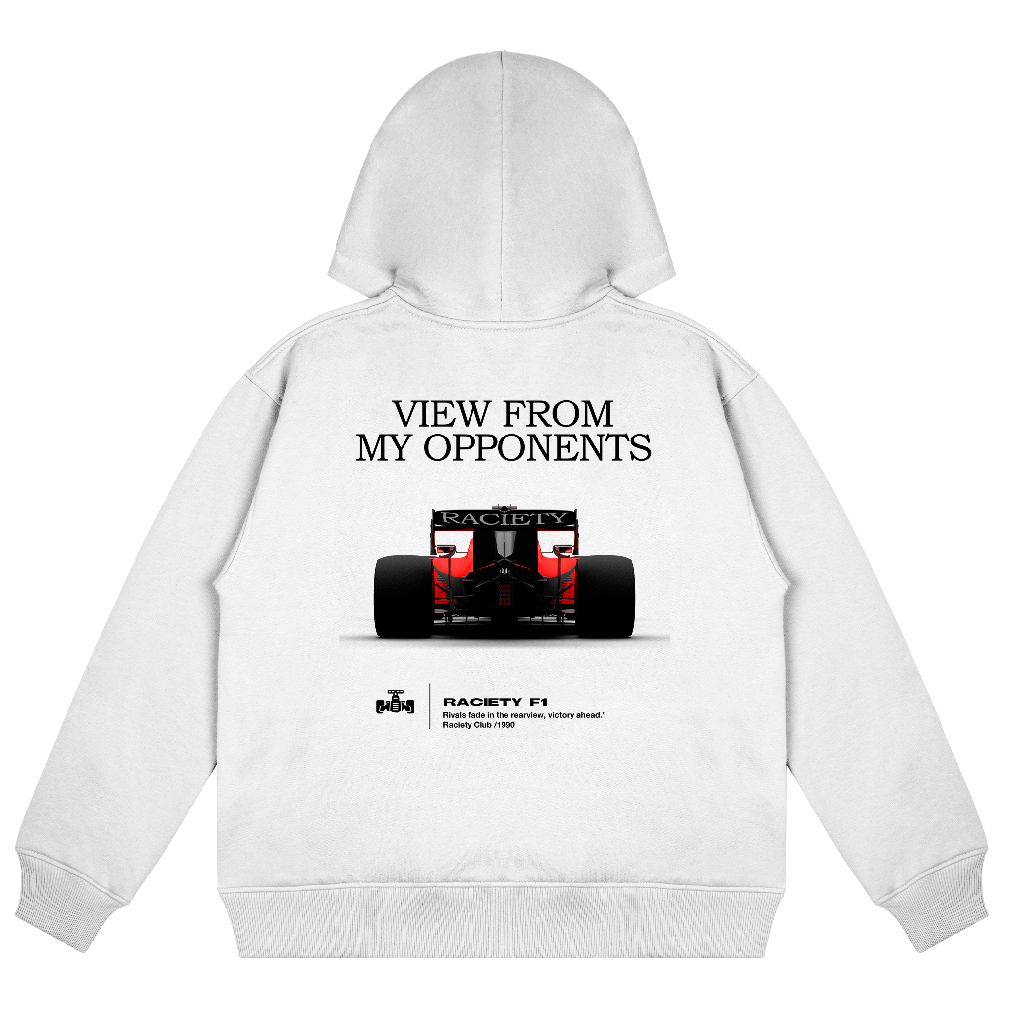 Introducing our new limited hoodie by Raciety: a sophisticated tribute to determination and leadership. This minimalist design features the iconic Formula One race car on the back, offering the exclusive perspective from behind, symbolizing your constant progress towards success.