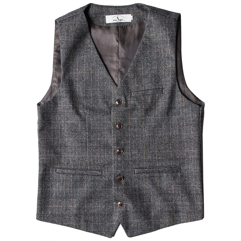 SOARIN British Retro Business Plaid Suit Vest - Gray (Brown Line Plaid) [73B20]