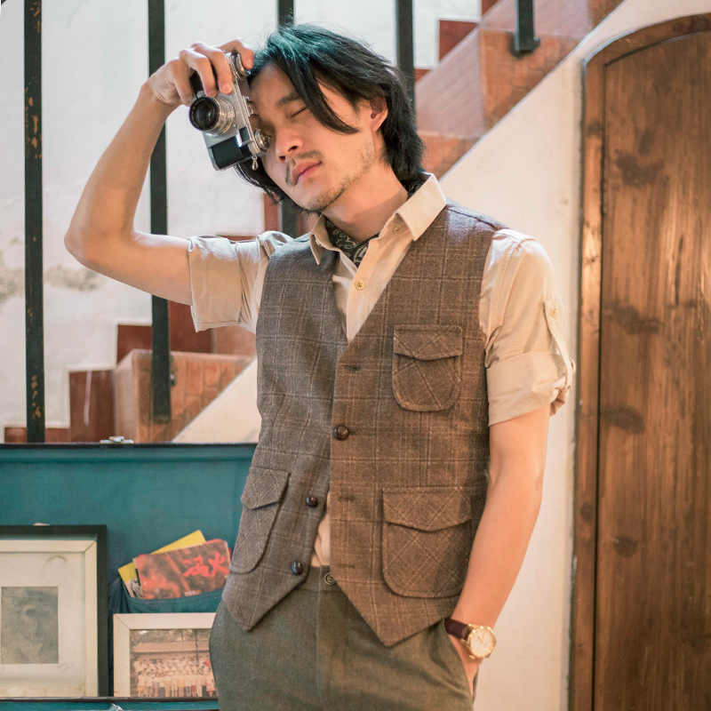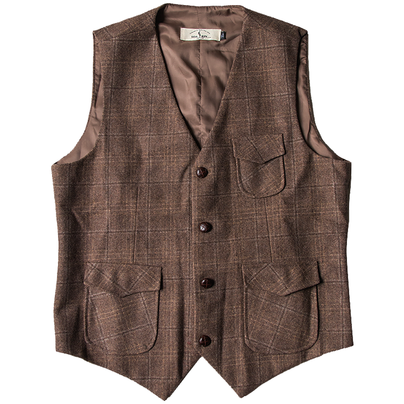 SOARIN British Retro Wool Plaid Suit Vest - Khaki [73B36]